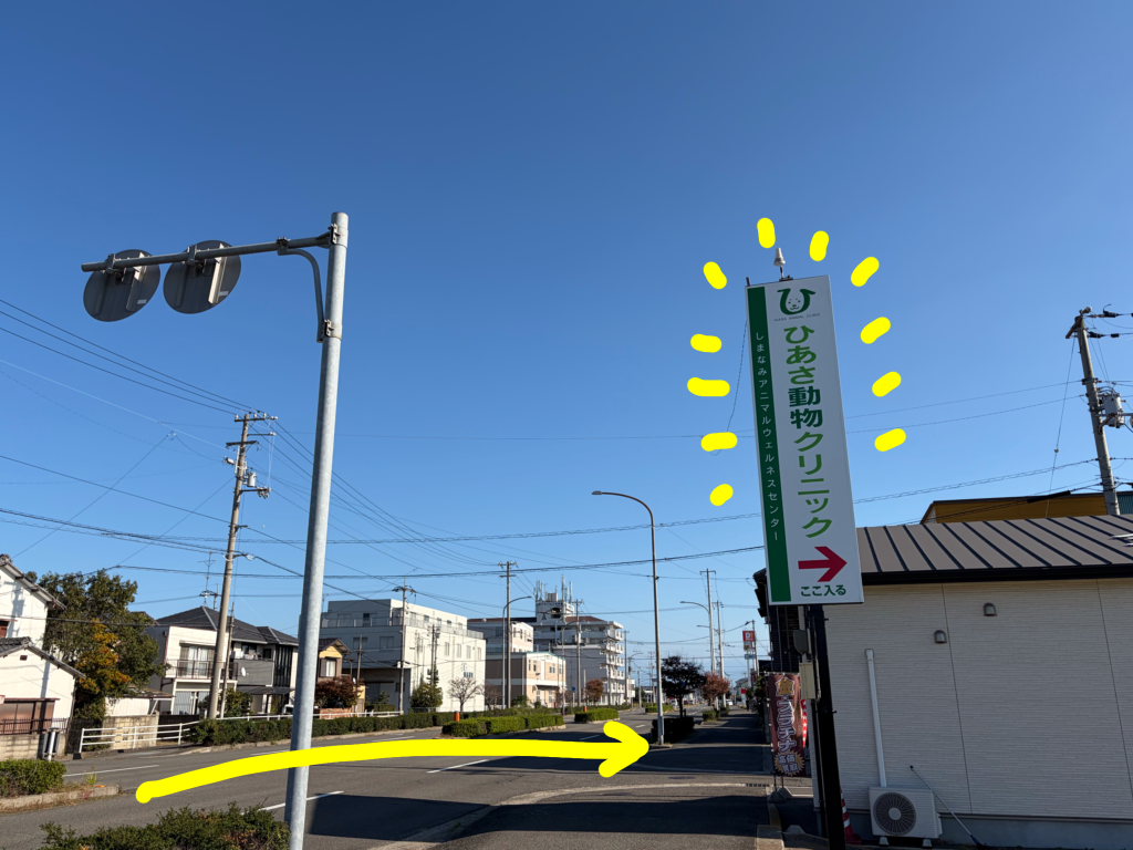 この看板を目印に、駐車場へお入りください。